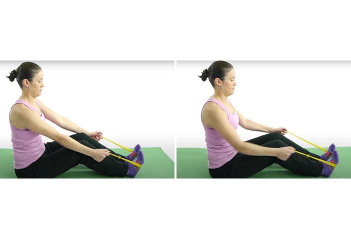 This exercise works on the back of the shoulders and helps open up a rounded or hunched back. Hold the handles of your resistance band, extending your arms out and in front of you. Engage the core and pull the.
